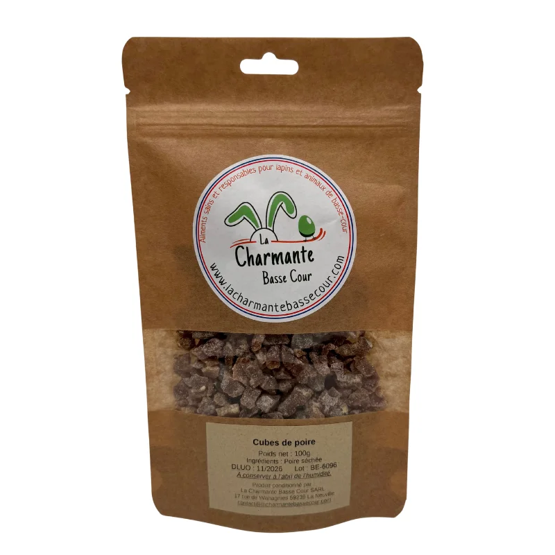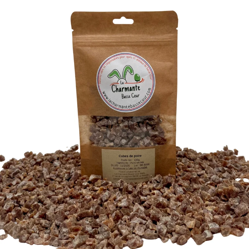 Cubes de poire séchée : une friandise gourmande pour les lapins