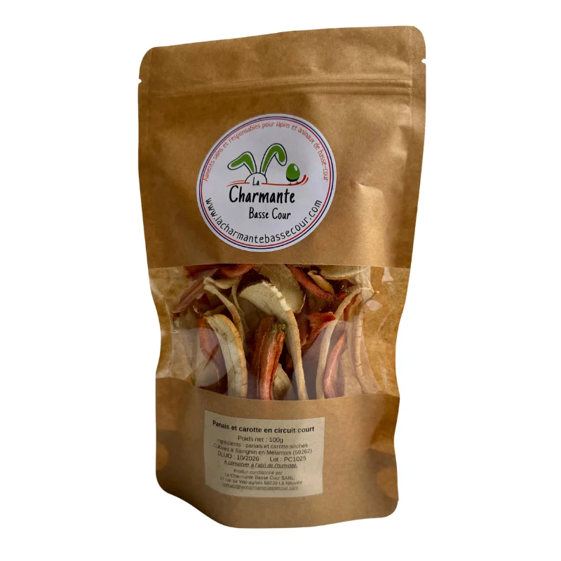 Voici un duo qui ne laissera pas indifférent vos boules de poils, voire même qui entrera dans le top de leurs friandises préférées : de belles tranches de carottes et de panais séchées dans notre atelier à basse température afin de préserver toutes leurs qualités nutritionnelles.