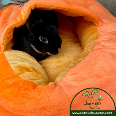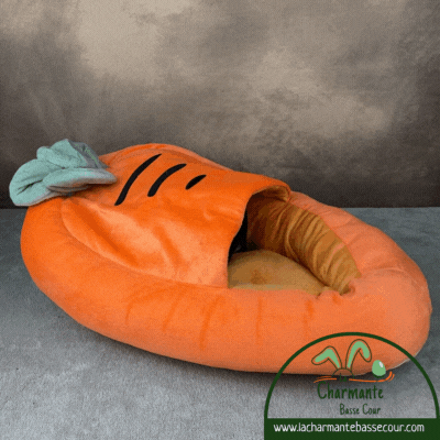 Ce joli lit carotte, très doux et confortable pourra également servir de cachette à votre boule de poils !