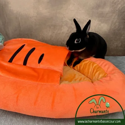 Bon produit. Un peu compliqué pour ma jeune lapine qui est aveugle et n’a pas trouvé comment utiliser l’ouverture, mais la taille est super et elle aime assez se coucher dessus. Petit bémol, l’ancien lit proposé avant celui-ci (le gris) était plus adapté aux handicaps.